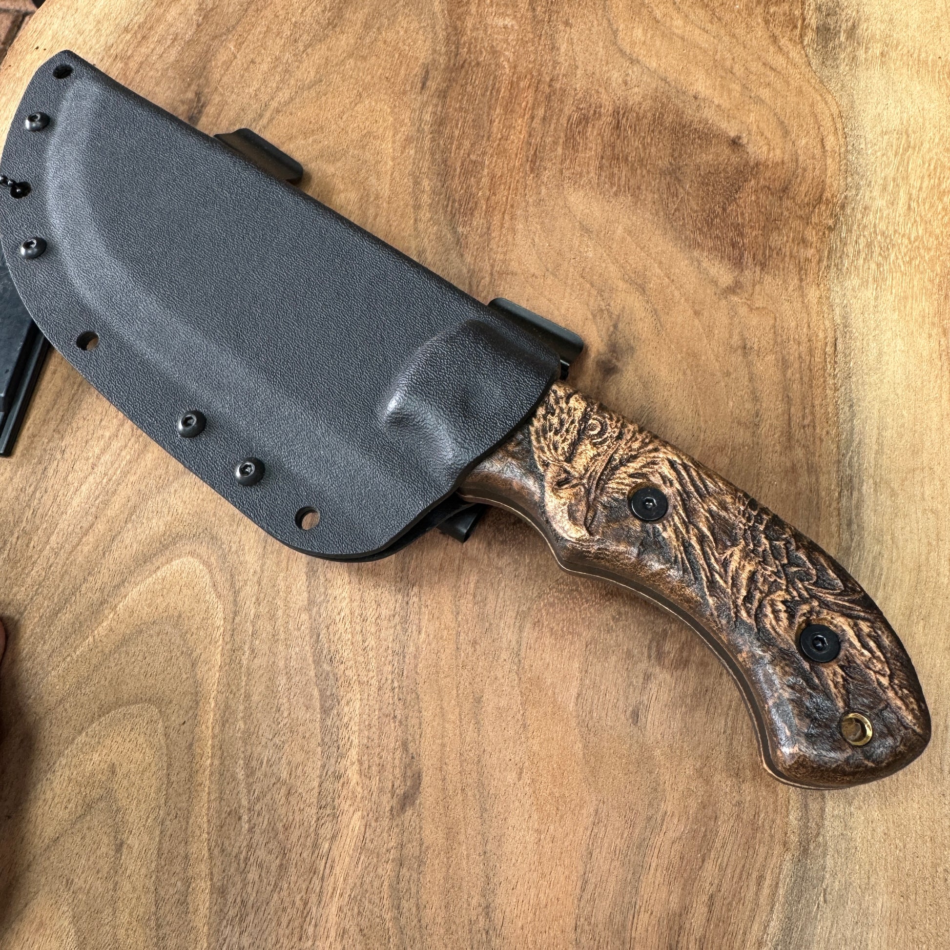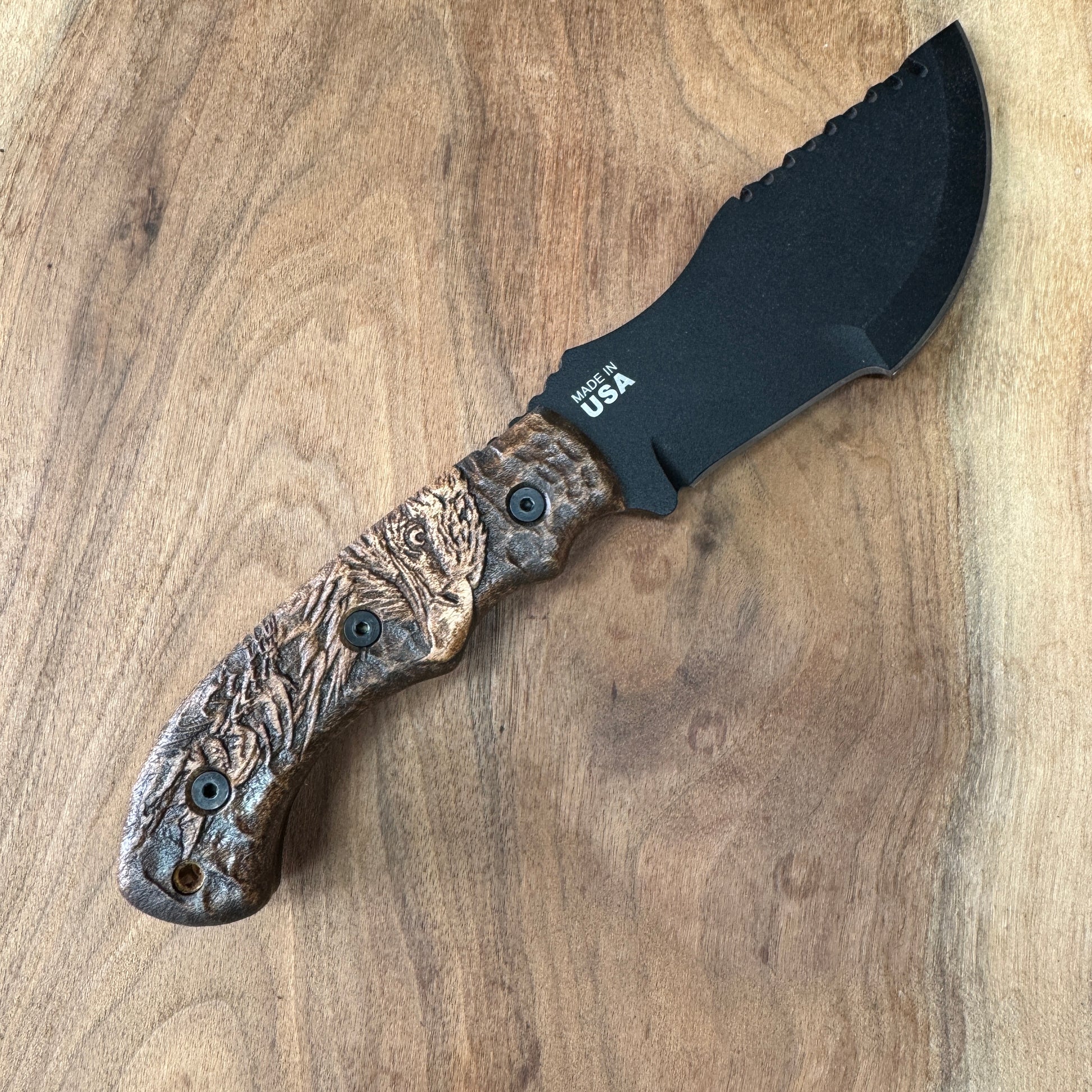 Whether you're out in the wild or simply appreciate the finer details in your tools, this carved handle is sure to turn heads and start conversations. Add this to your collection and handle your knife with confidence and style.