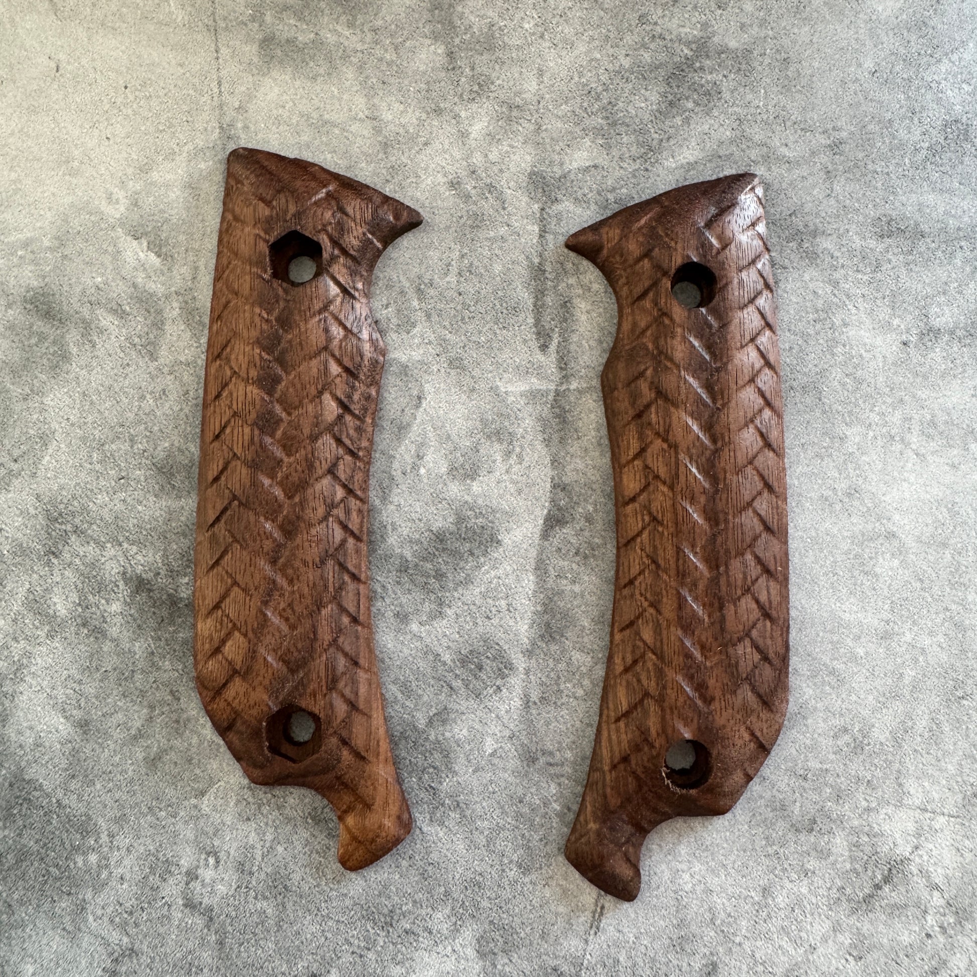 Material: Each handle is carved from high-quality Walnut wood, known for its durability and great look.