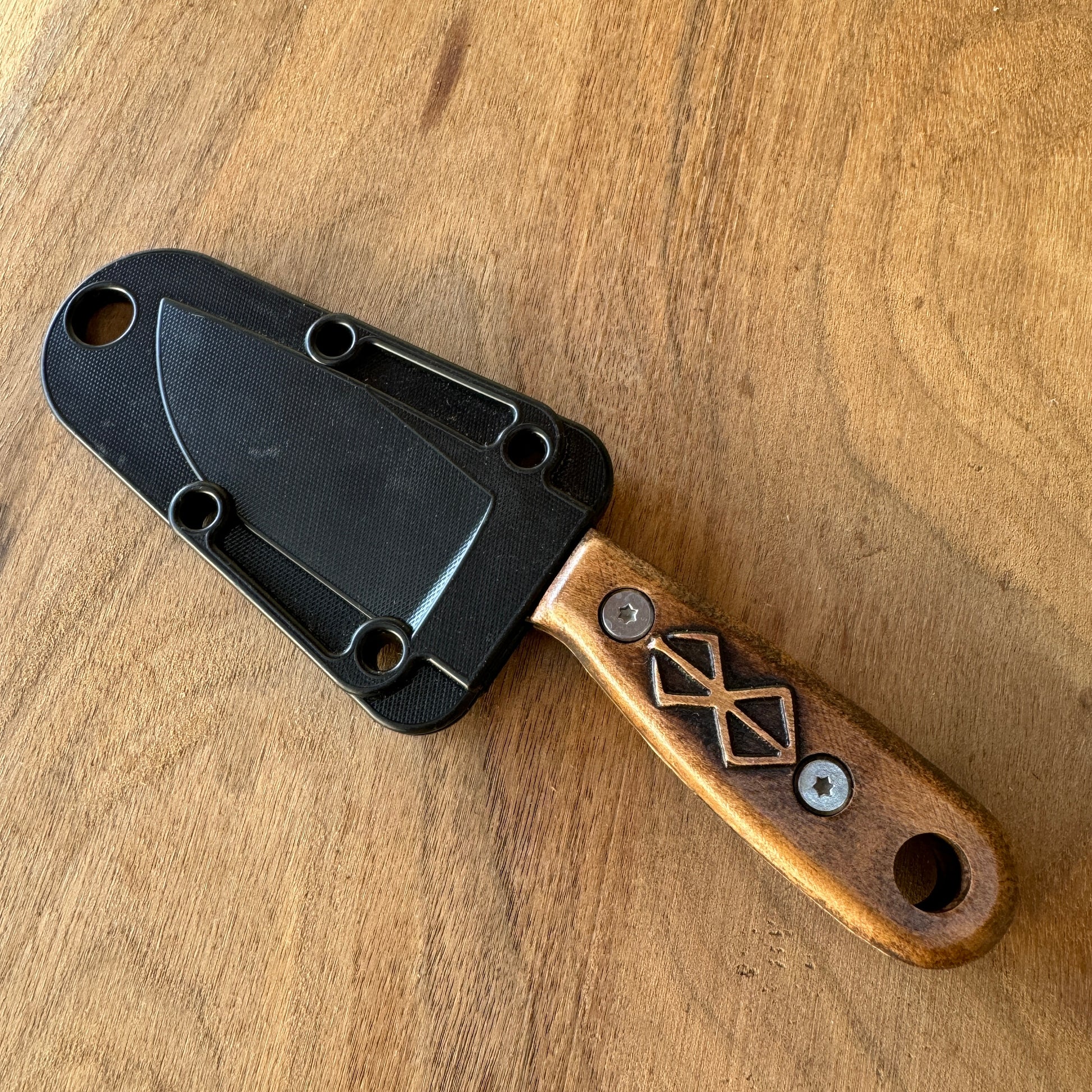 Elevate the look of your ESEE Izula knife with this meticulously crafted handle, designed for enthusiasts who appreciate a touch of the macabre. This handle is not your average accessory; it's a statement piece that combines functionality with a bold aesthetic.