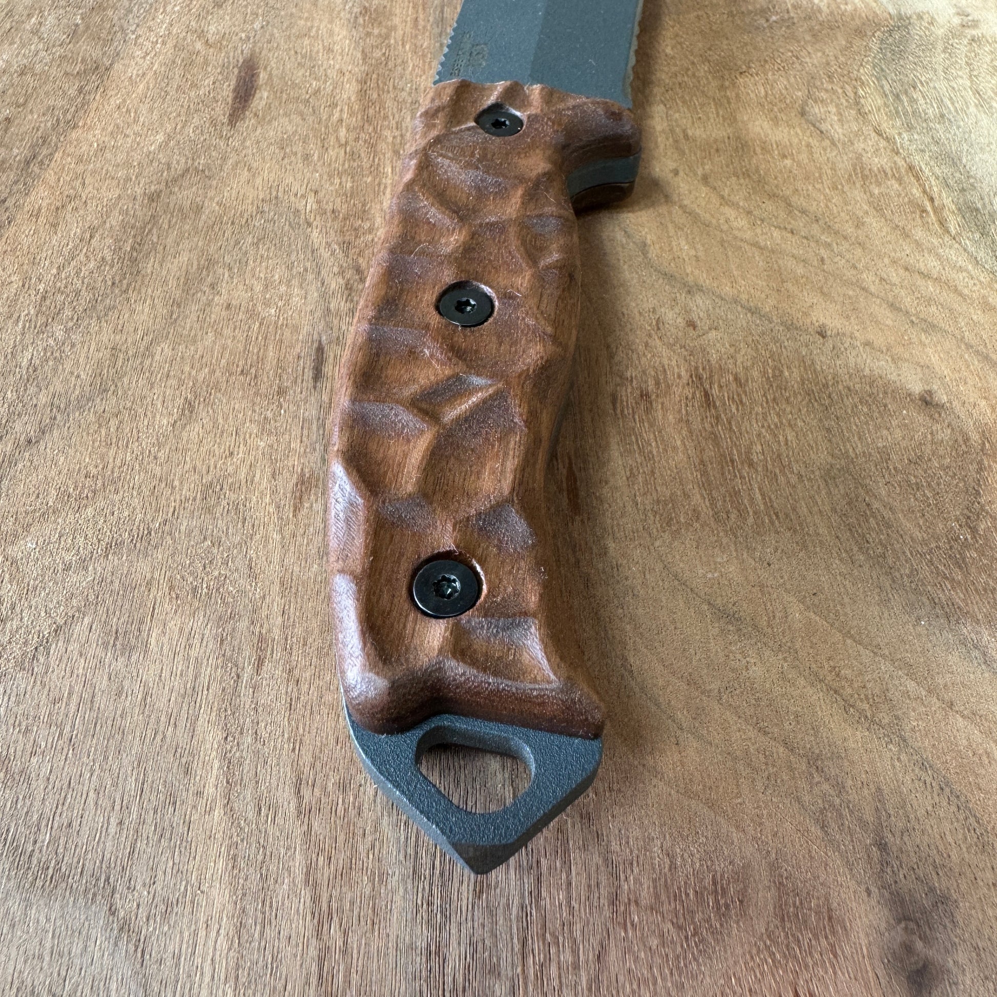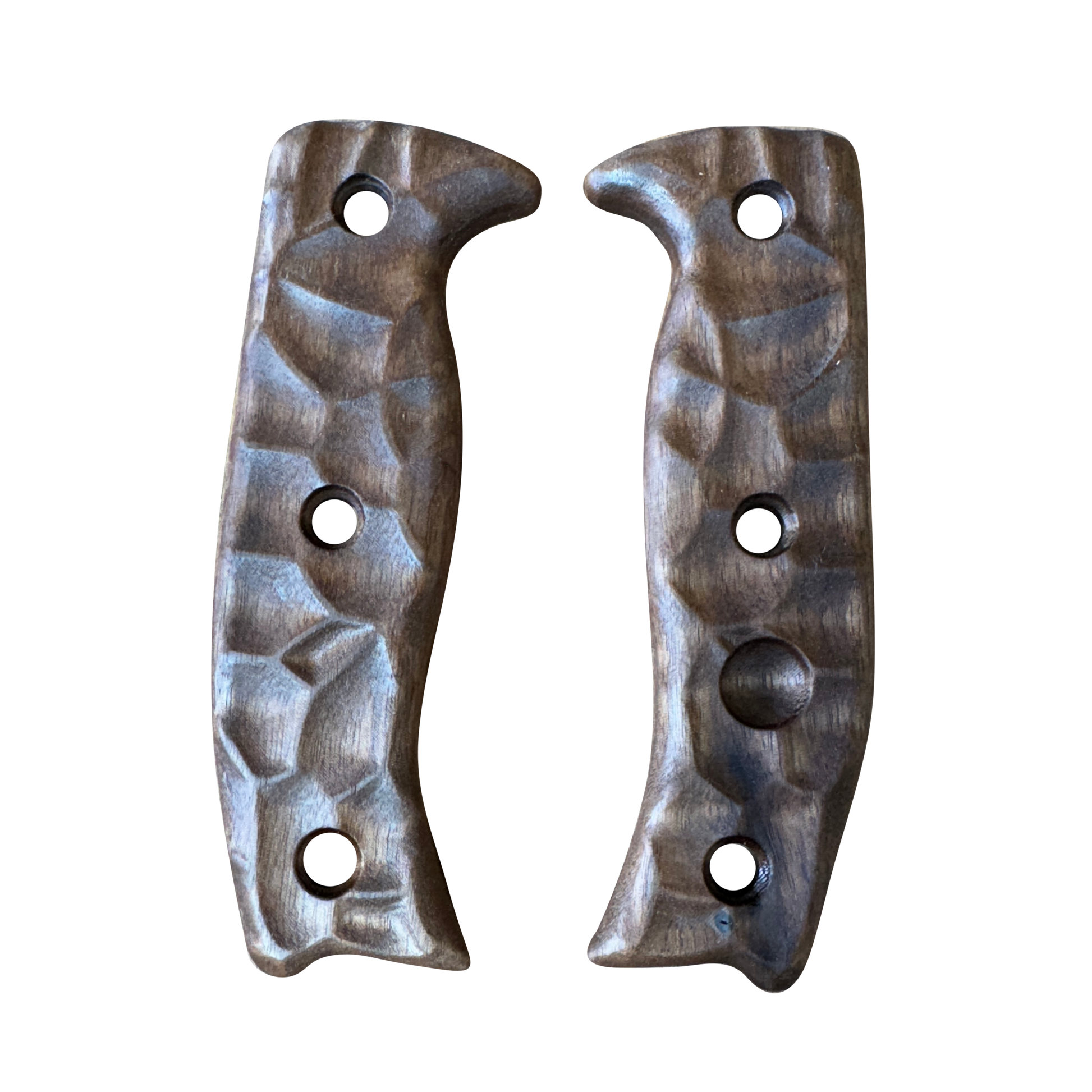 Material: Each handle is carved from high-quality walnut wood, known for its durability and light weight, ensuring that it doesn't add unnecessary bulk to your knife.