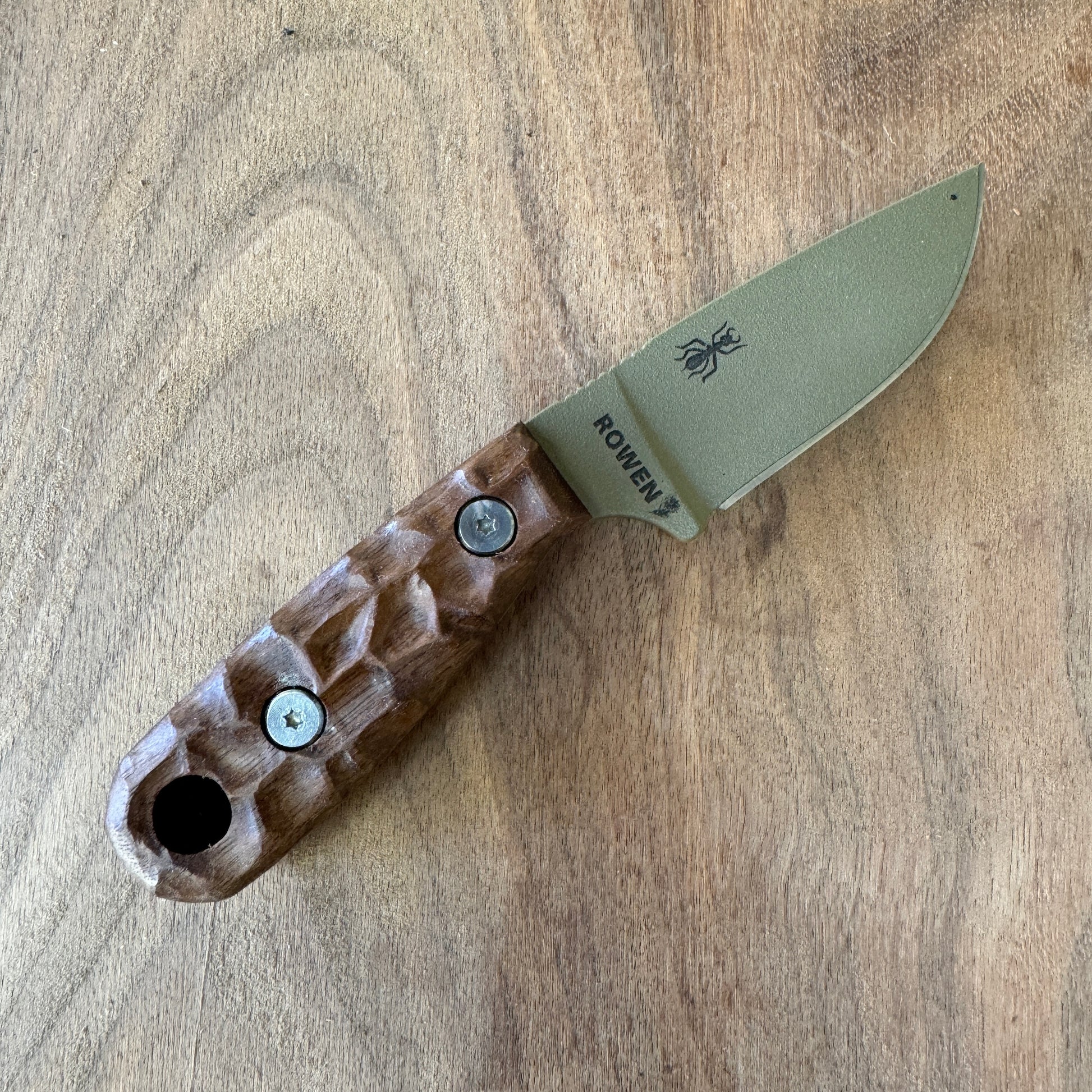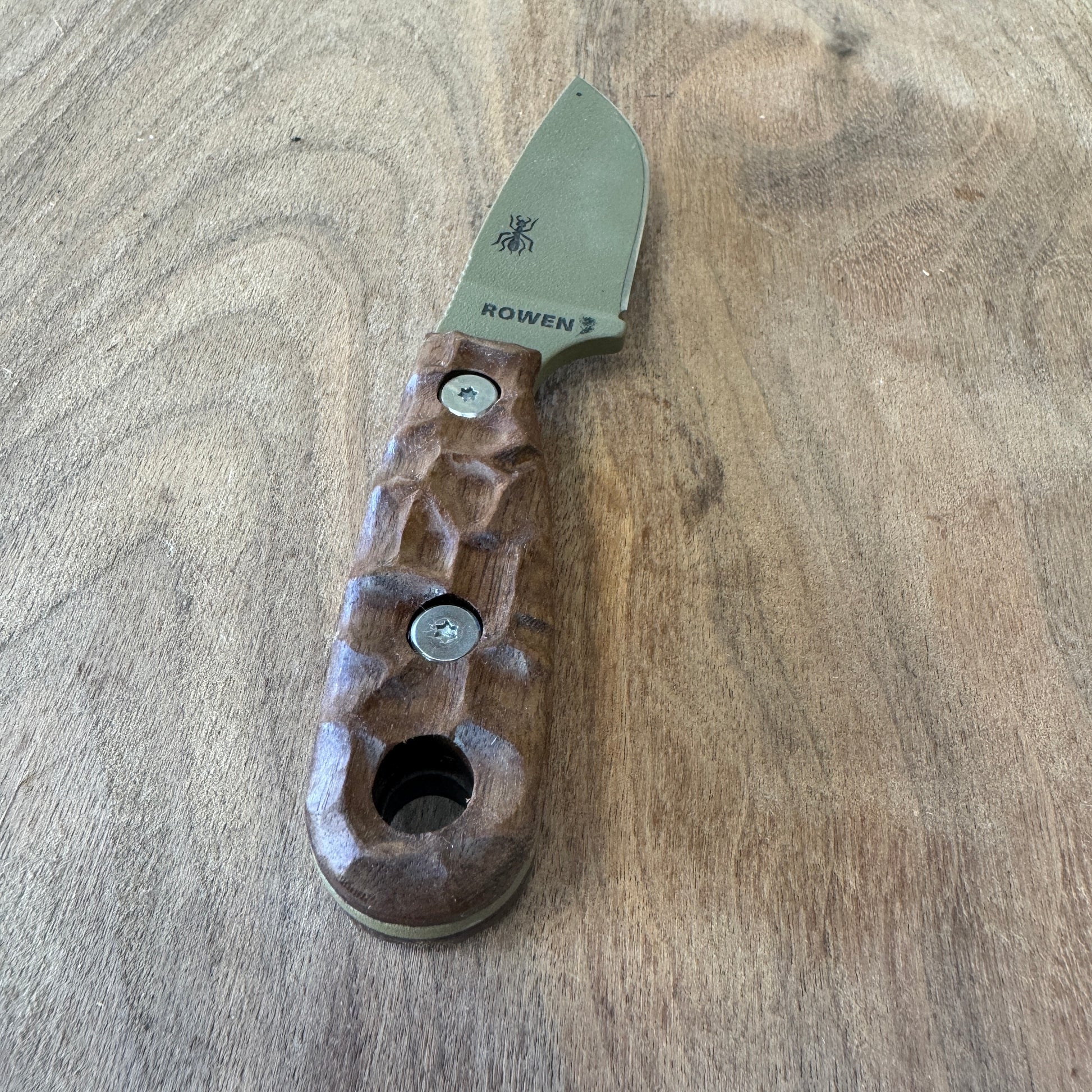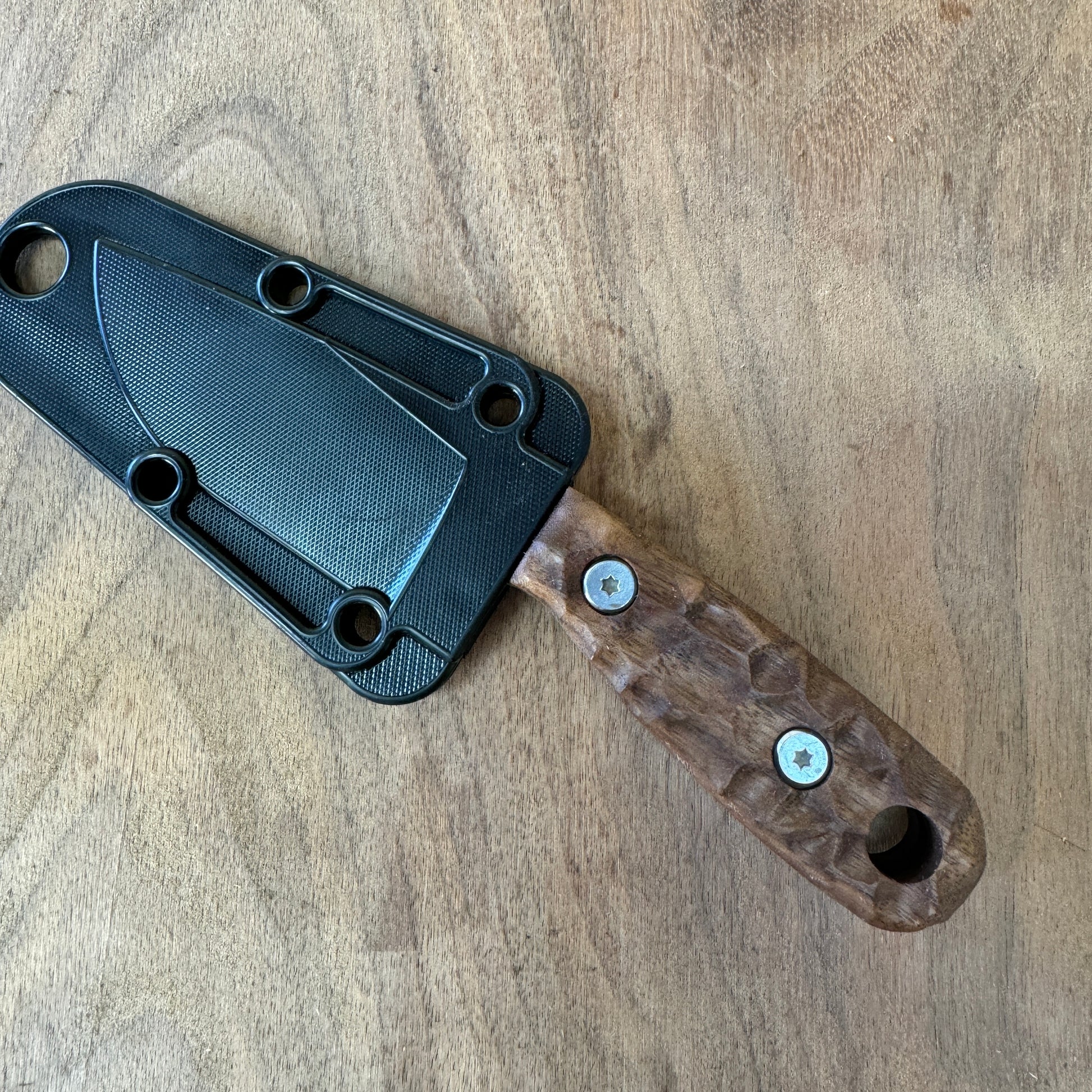 • Material: Each handle is carved from high-quality walnut wood, known for its durability and light weight, ensuring that it doesn't add unnecessary bulk to your knife