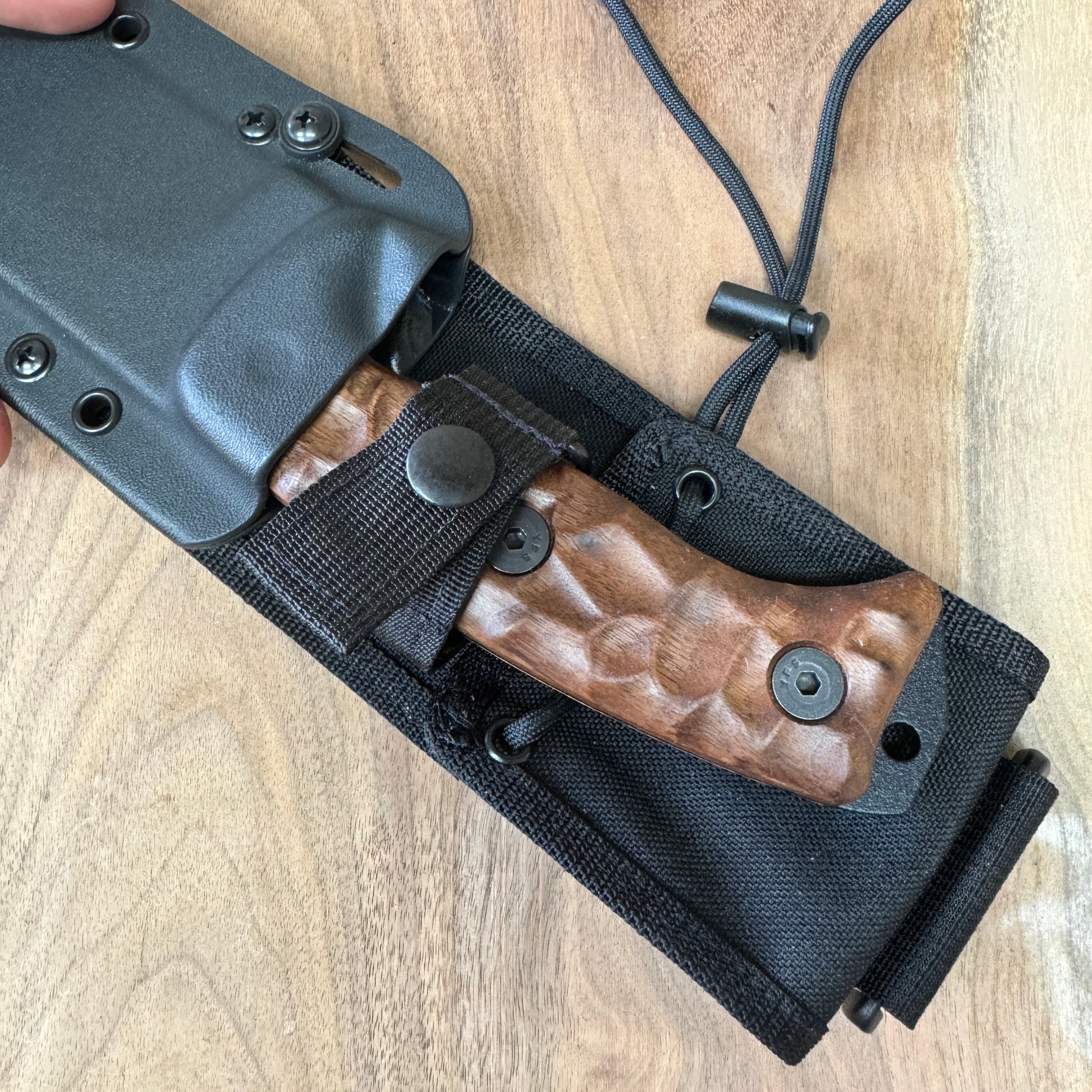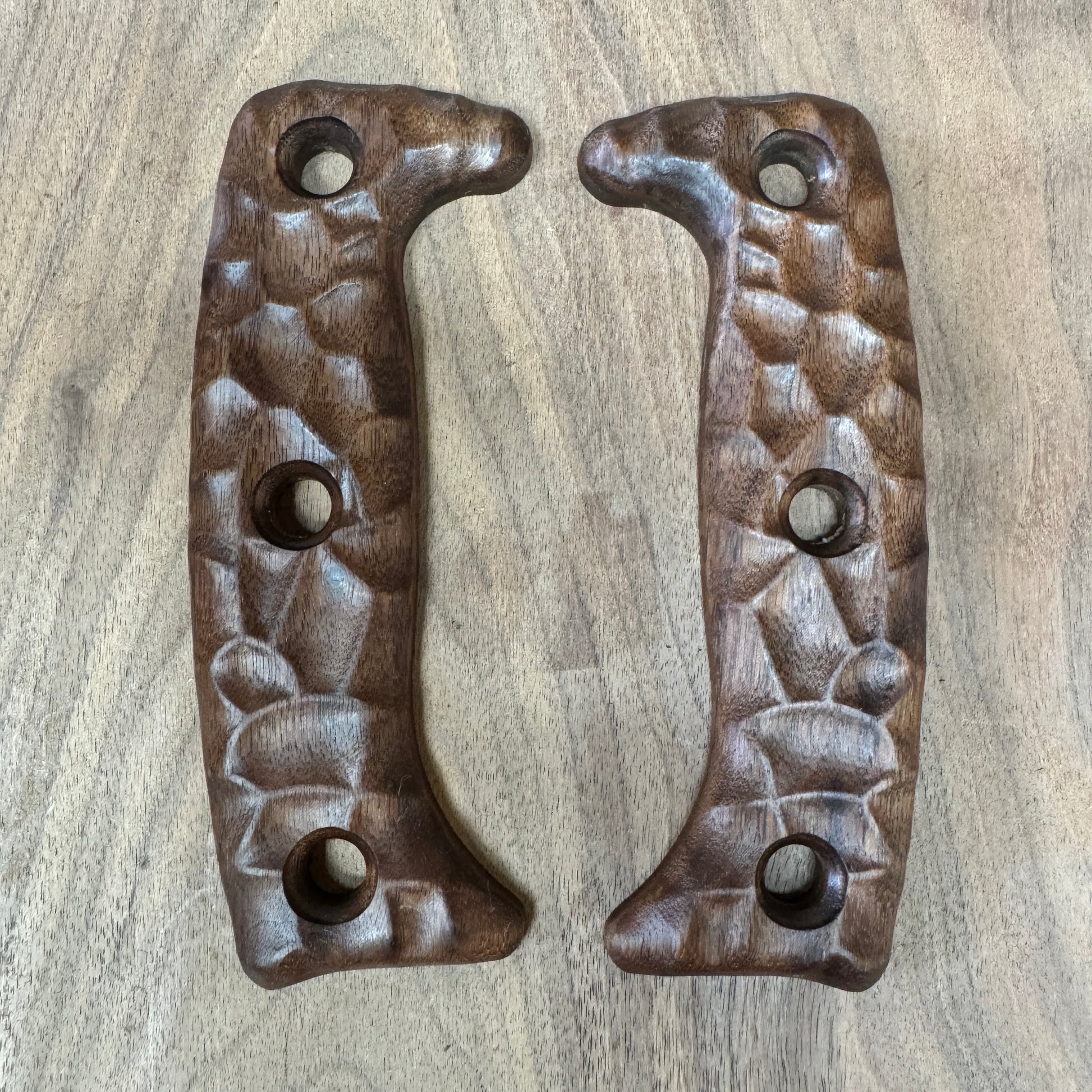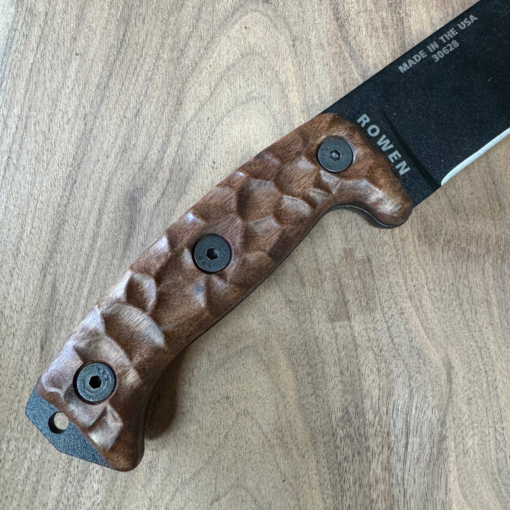 Material: Each handle is carved from high-quality walnut wood, known for its durability and light weight, ensuring that it doesn't add unnecessary bulk to your knife.