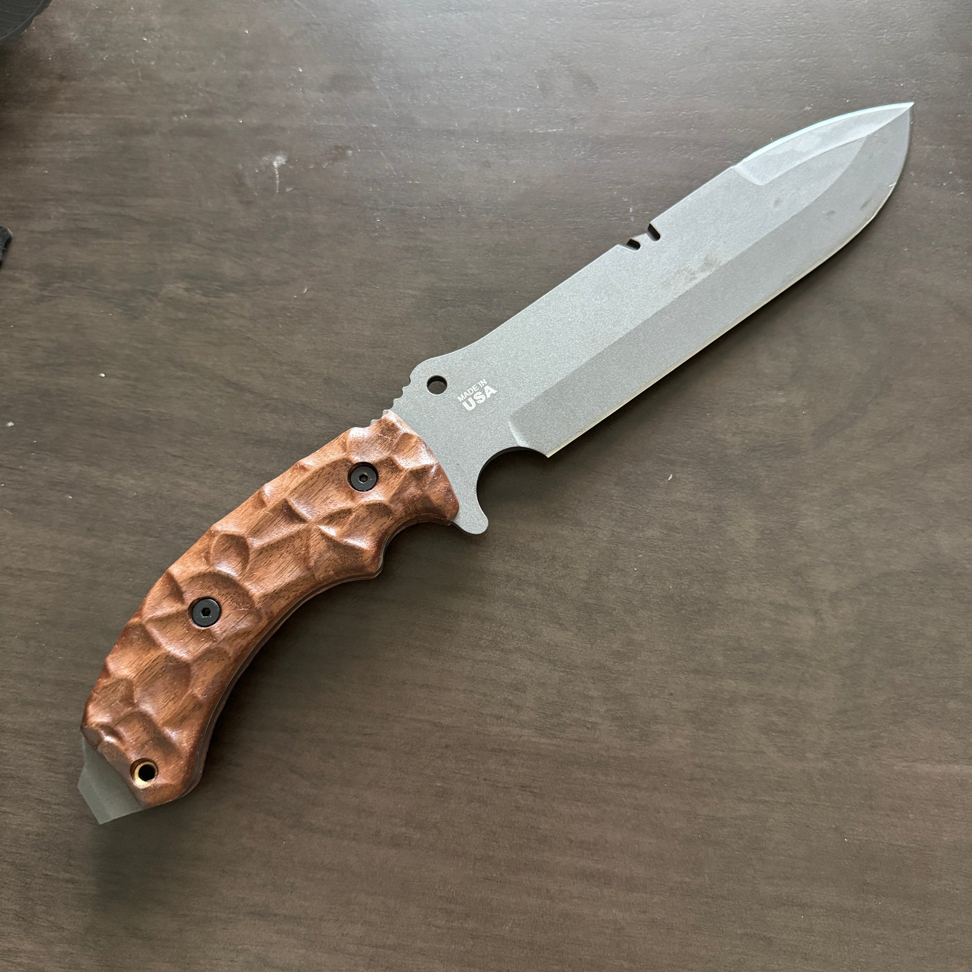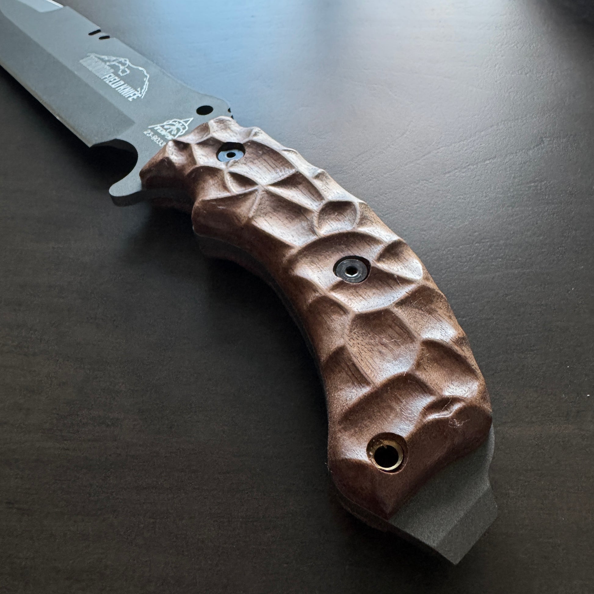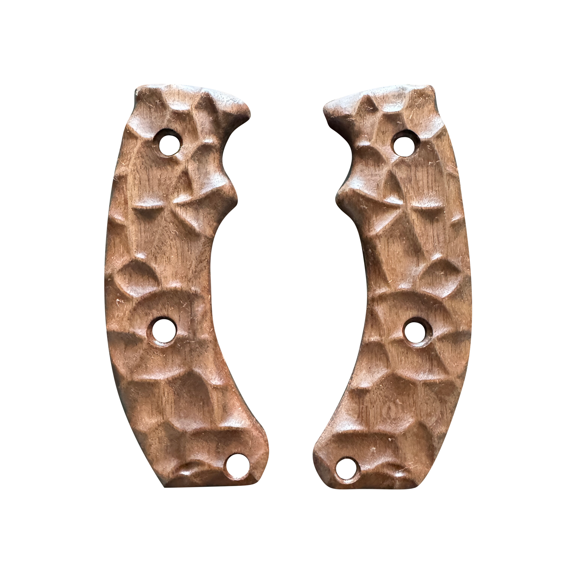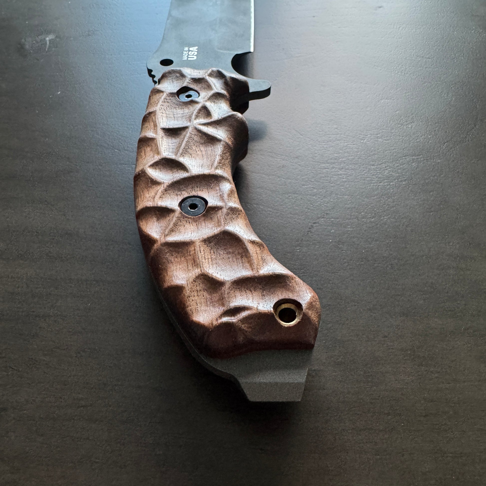 Material: Each handle is carved from high-quality walnut wood, known for its durability and light weight, ensuring that it doesn't add unnecessary bulk to your knife.
