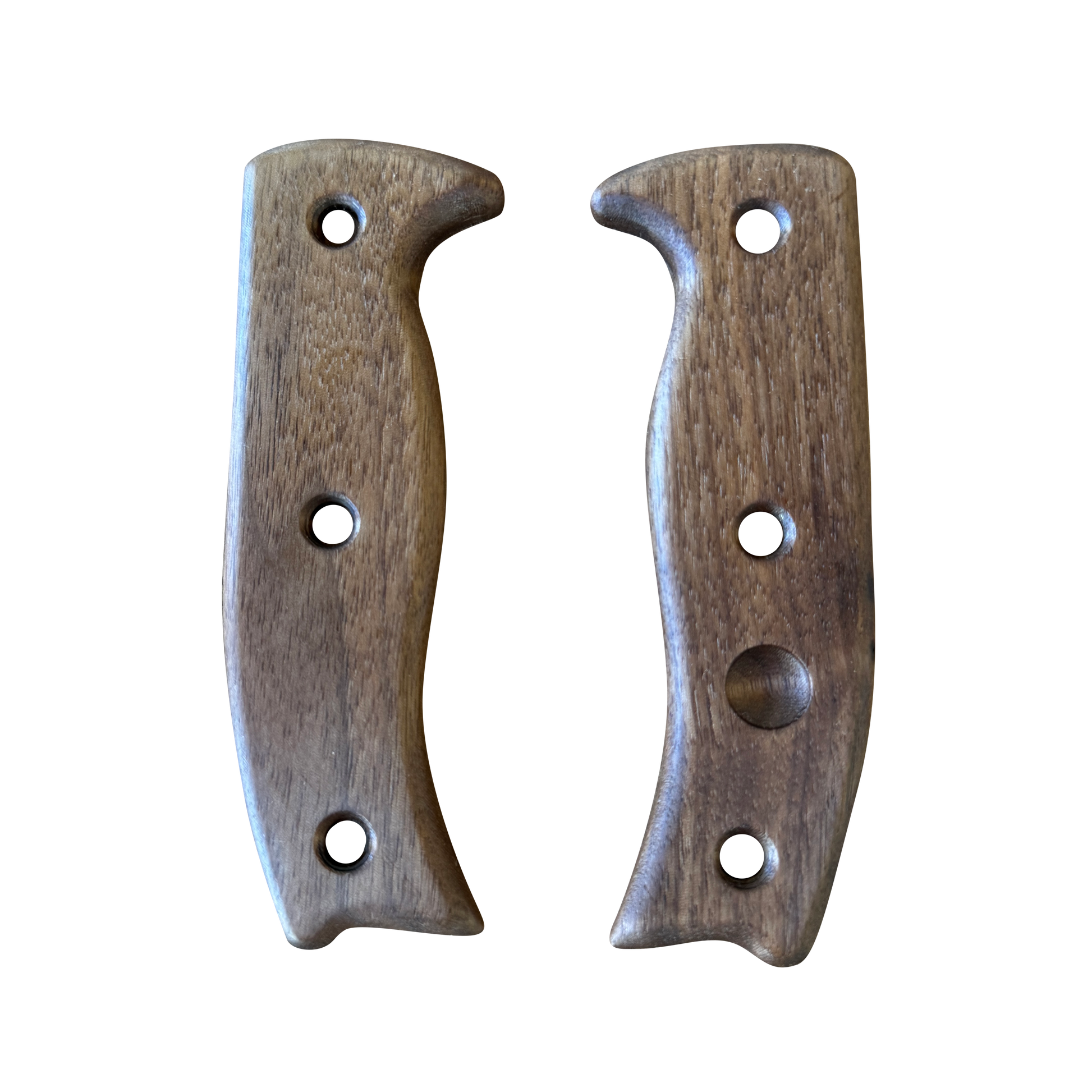 Material: Each handle is carved from high-quality walnut wood, known for its durability and light weight, ensuring that it doesn't add unnecessary bulk to your knife